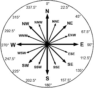 As far as directions such as northeast – those are called intercardinal points. The others are northwest, southwest, and southeast. These are directions which are halfway between north and east. Secondary intercardinal points are between each cardinal and intercardinal point. These would be known as north-northeast, east-northeast, etc. These are great to know, but in order to know precisely where you are going, you will need to be able to read degrees on a compass.