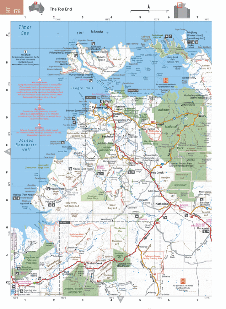 Featuring trusted Hema mapping for all of Australia, the Hema Road & 4WD Atlas is the definitive travel guide for tourers and adventurers. Hema atlases feature more information useful to travelers, including 4WD tracks, campsites, caravan parks, rest areas, 24-hour fuel, and points of interest.