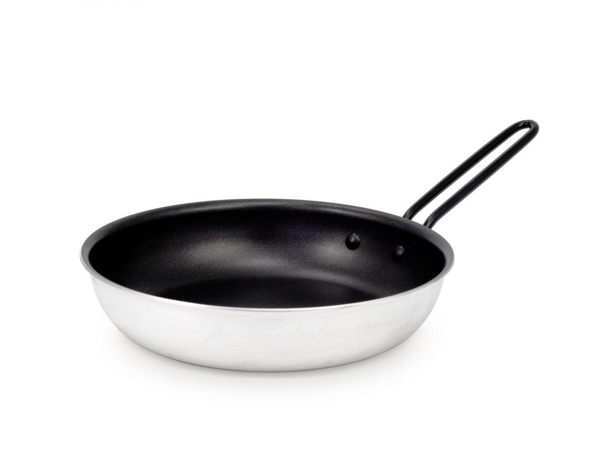 The Bugaboo Camping Fry Pan brings wholesome home-cooked meals to the outdoors with its dependable, even-heating, non-stick coated surface. Made of thick gauge aluminium for rugged durability, the Bugaboo’s Teflon non-stick coating keeps food from sticking while cooking and makes cleaning up a breeze. A spiral-turned base grips stove and grill arms securely.