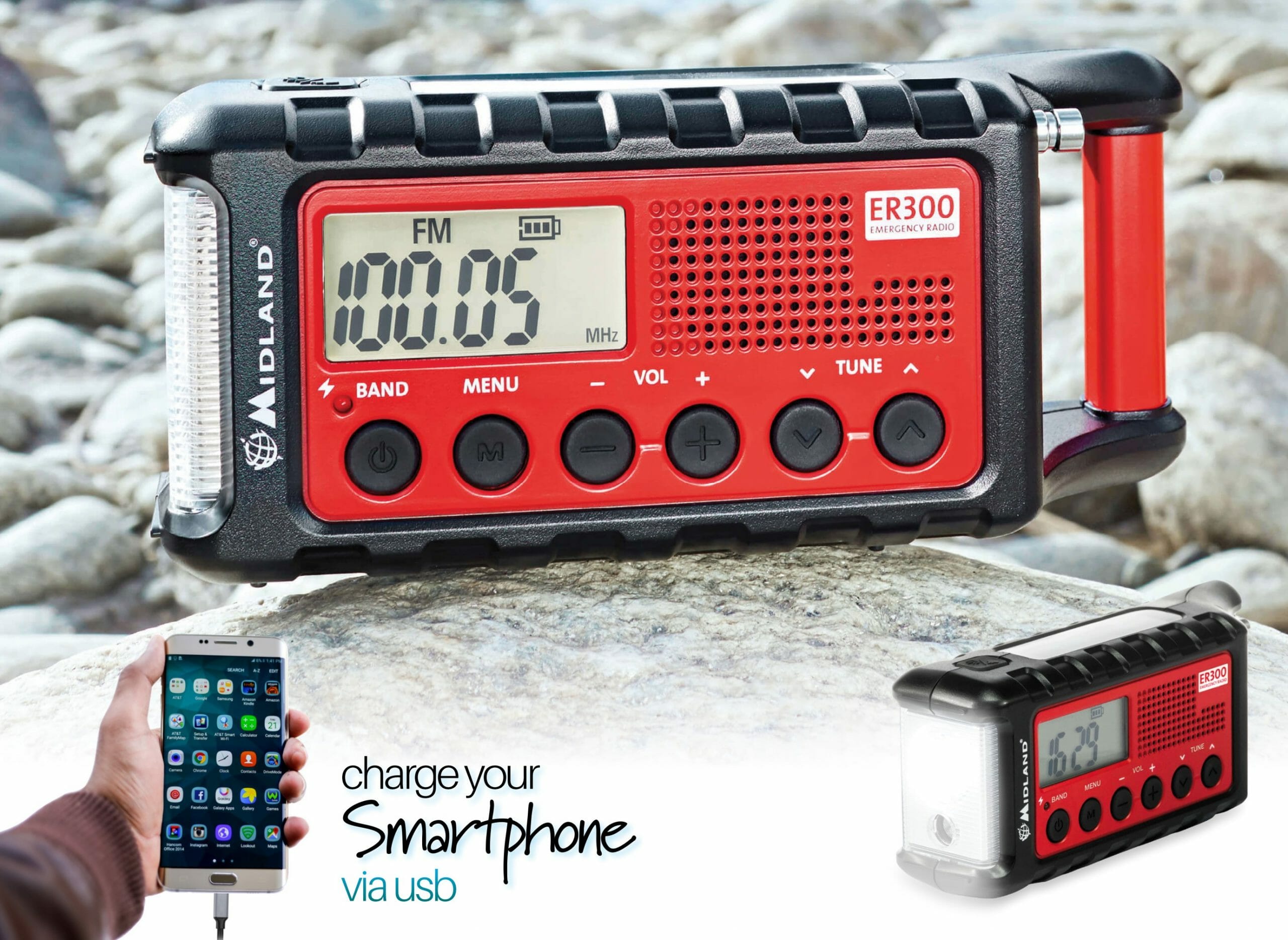 The Midland ER300 is a compact and versatile emergency crank radio that can be used as an LED torch and portable power bank. Ideal for fishing, camping & emergencies, this handy unit will prove it’s tough reliability for a long time.