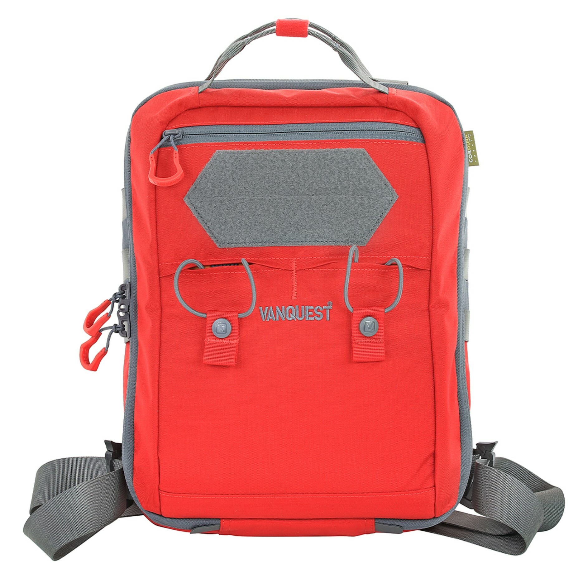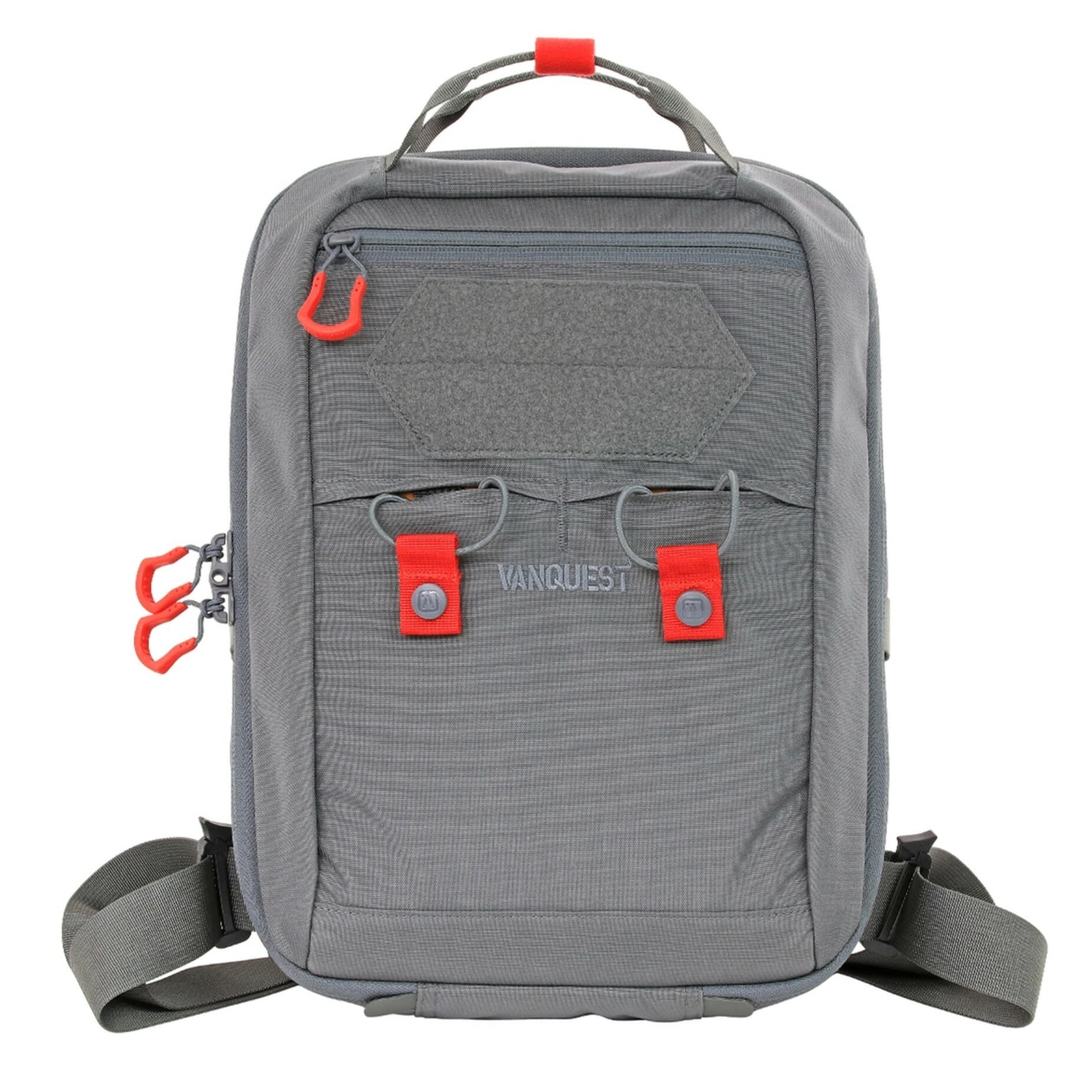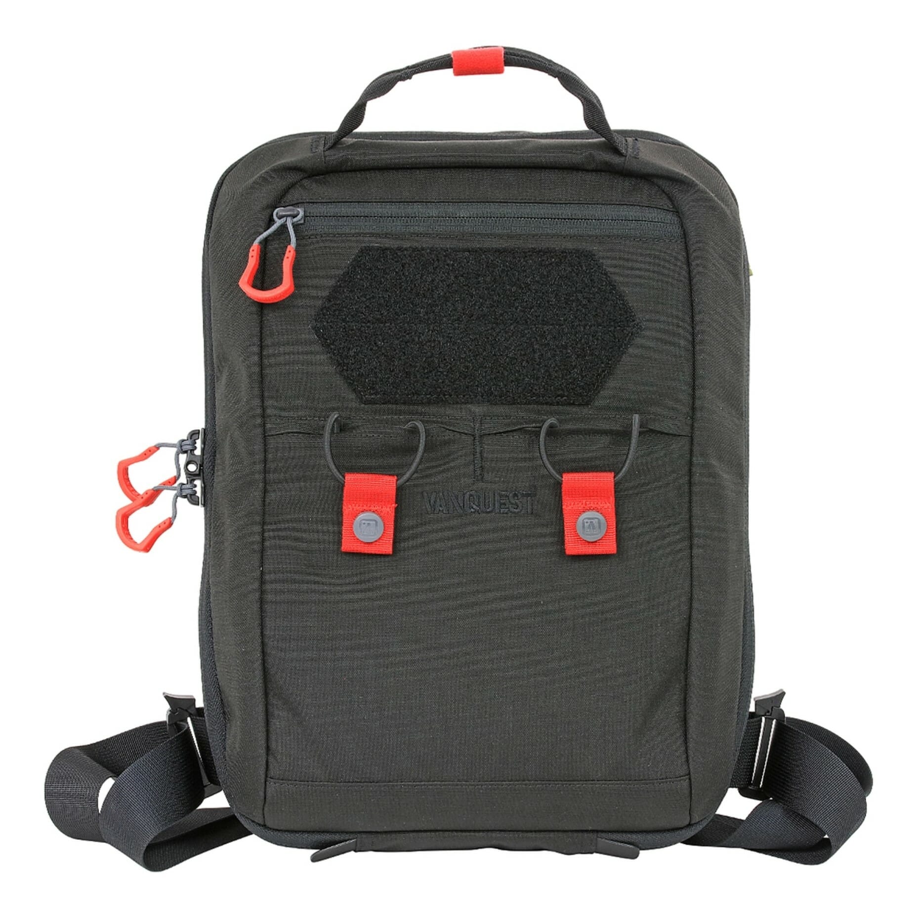 Vanquest FATPack-Pro is a compact 15” (H) x 10” (W) x 5.5” (D), single layer convertible sling pack that bridges the gap between sling and backpack by converting from a sling into a two-shoulder bag with two included removable quick adjustment straps.