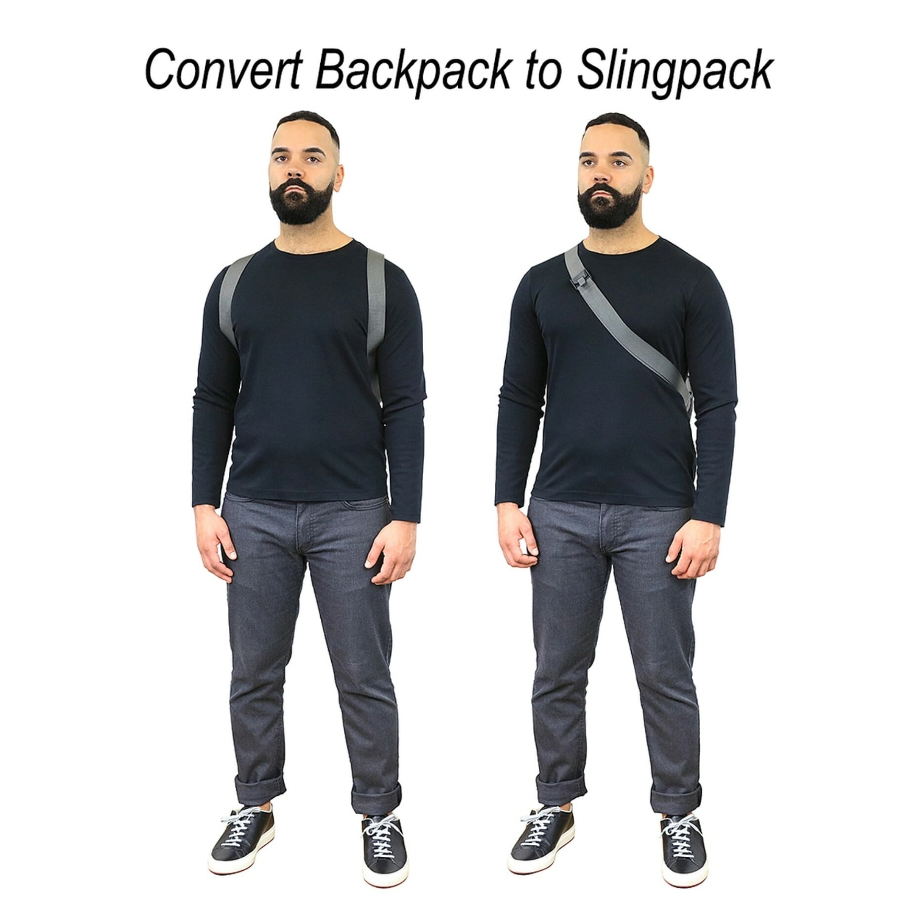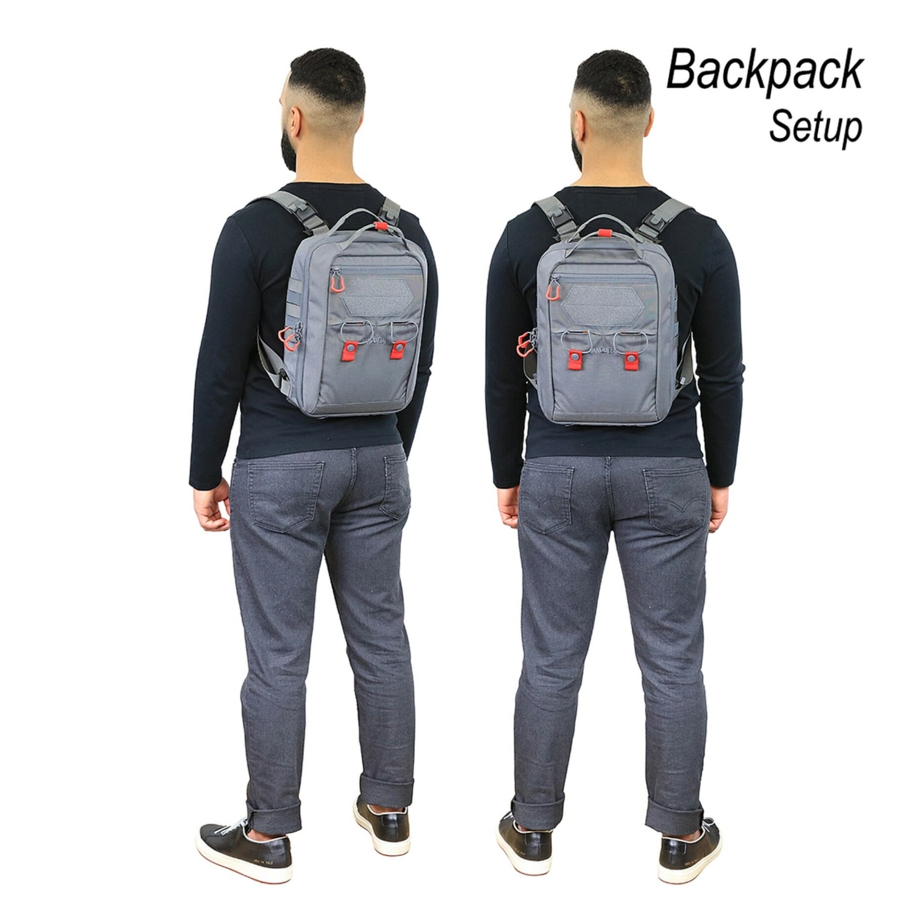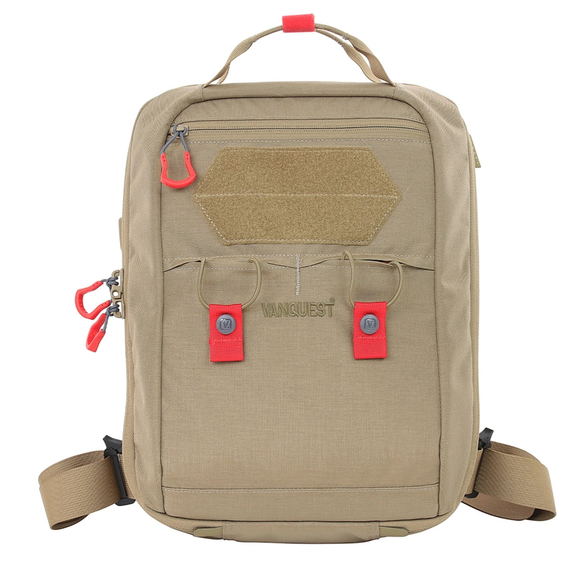 Vanquest FATPack-Pro is a compact 15” (H) x 10” (W) x 5.5” (D), single layer convertible sling pack that bridges the gap between sling and backpack by converting from a sling into a two-shoulder bag with two included removable quick adjustment straps.