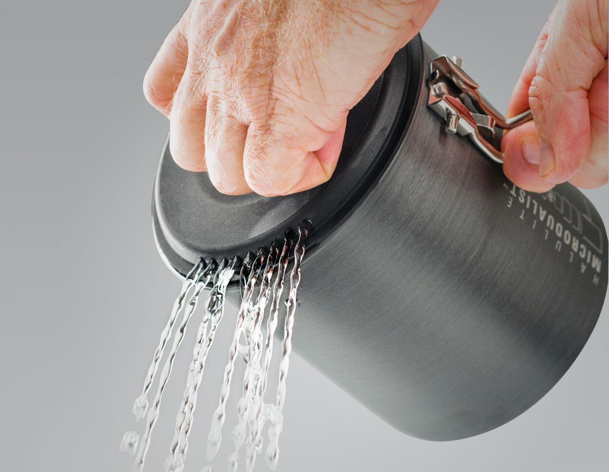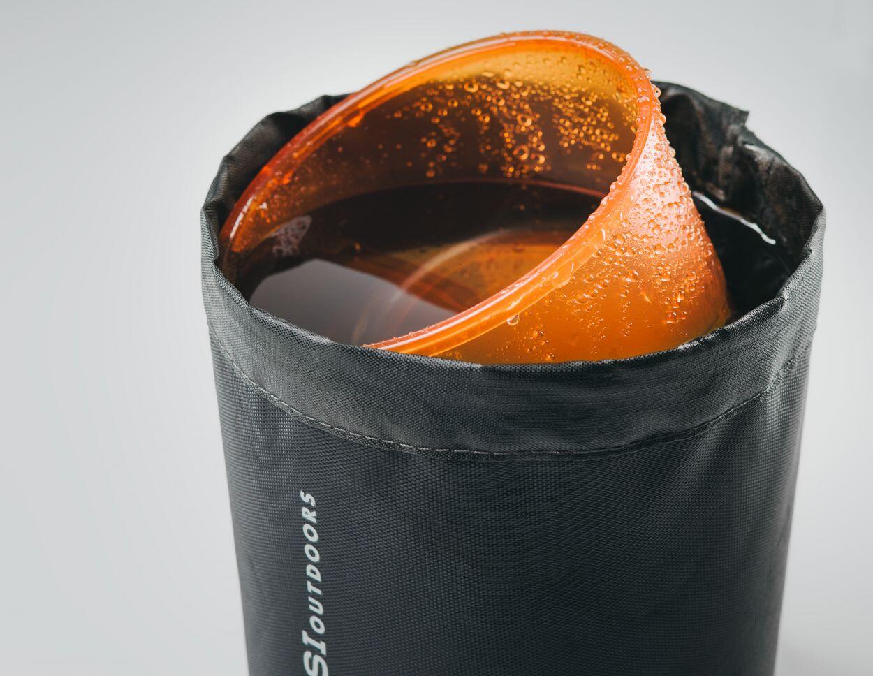– Welded stuff sack holds set while travelling and doubles as a sink or wash basin in camp