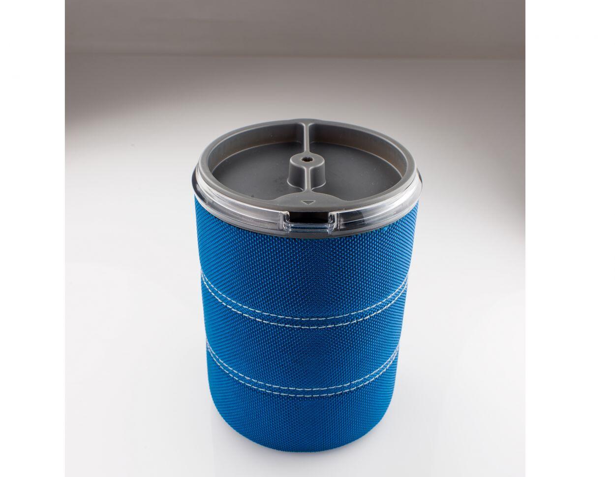 Both the mug and personal press are made of lightweight, shatter-resistant, BPA-Free Infinity polypropylene and feature an insulated, ballistic nylon-wrapped cover for extra comfort and can be easily removed for quick cleaning.