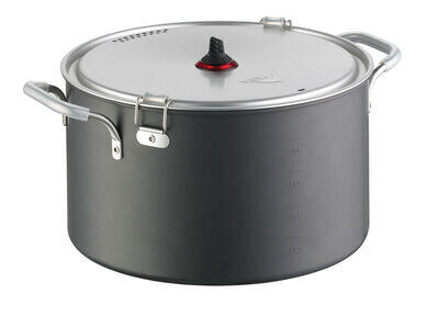 Includes: (1) 3.2L Non-stick hard-anodised aluminium pot, (1) Dual-handle 5.3L hard-anodised aluminium pot, (2) Aluminium Strainer lids, (4) DeepDish™ plates, (4) 370ml Insulated Mugs, (1) Talon™ pot handle.