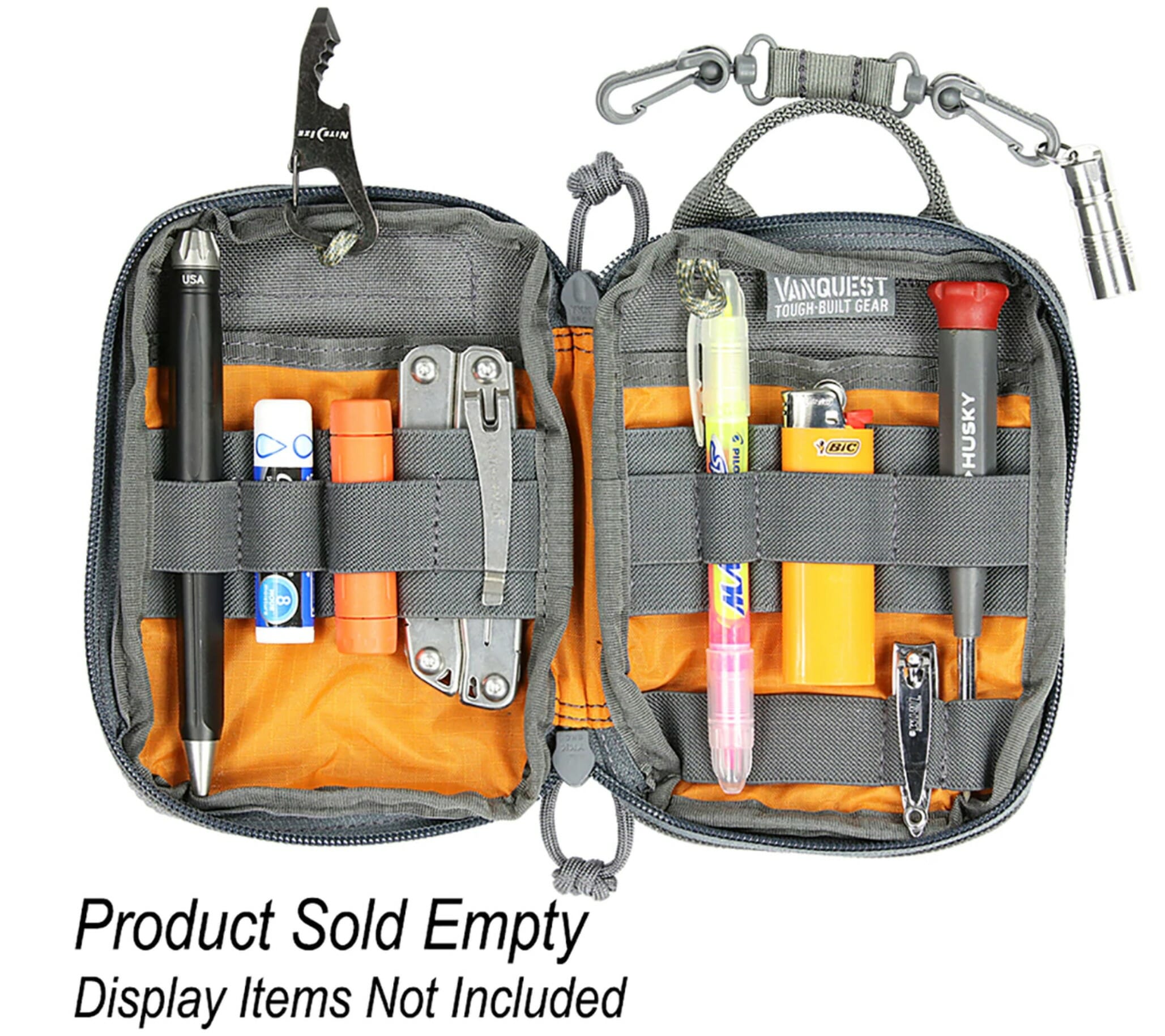 PPM-HUSKY 2.0 improvements: (1) easy access front slip pocket, (2) total 16 elastic webbing slots with pen/marker/pencil sized slots, (3) two position removable 12.7cm (overall) double hook key chain tether.