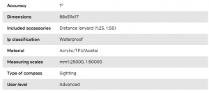 This compass model is equipped with a detachable scale lanyard that works like a ruler. The scale lanyard has two scales on it; 1:25, and 1:50, which makes it easier to measure the distance of your hike. Since its soft and bendable it’s easy to place directly on to your route on the map when you are out in the terrain – or when you are planning for your next adventure.