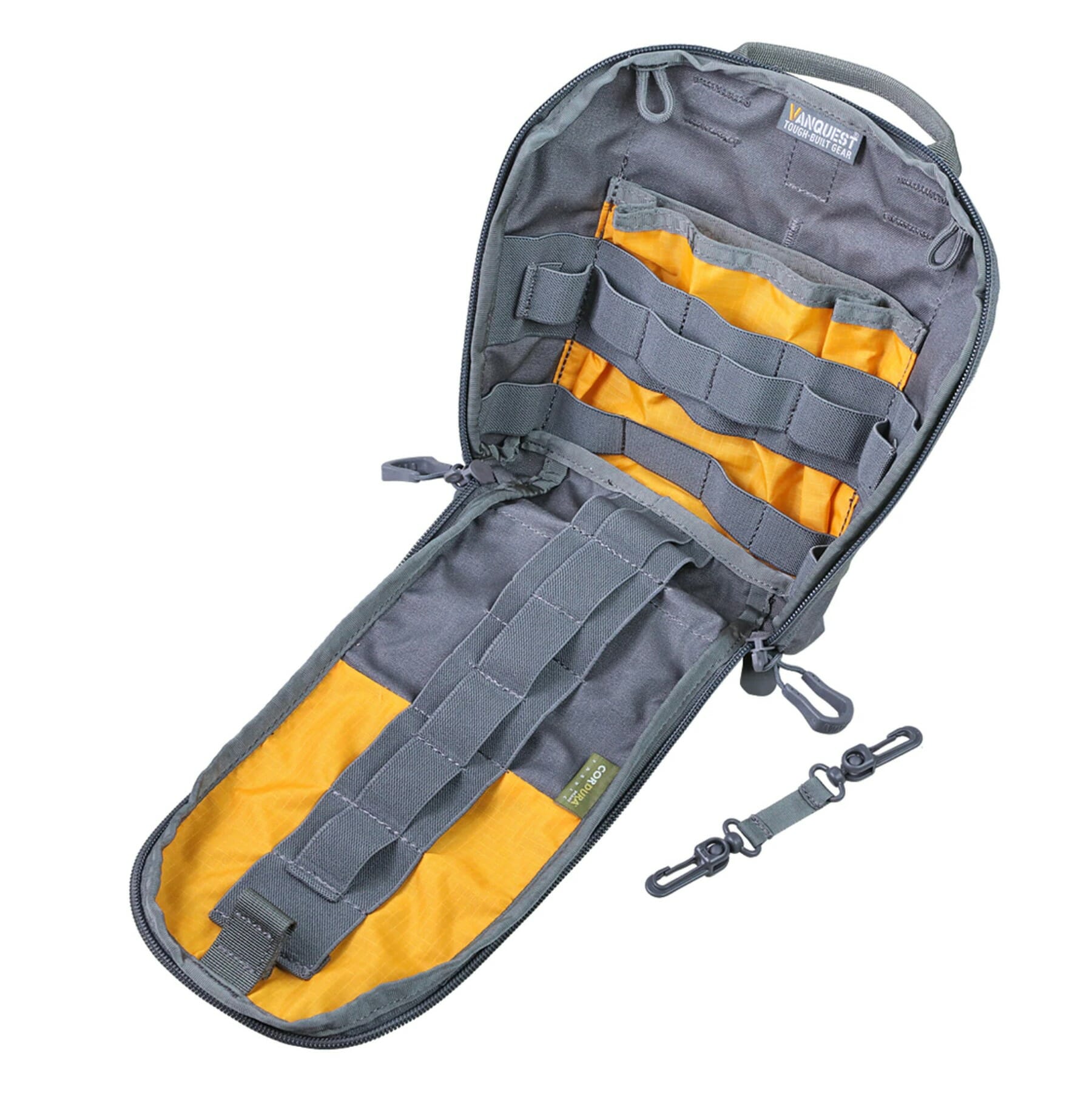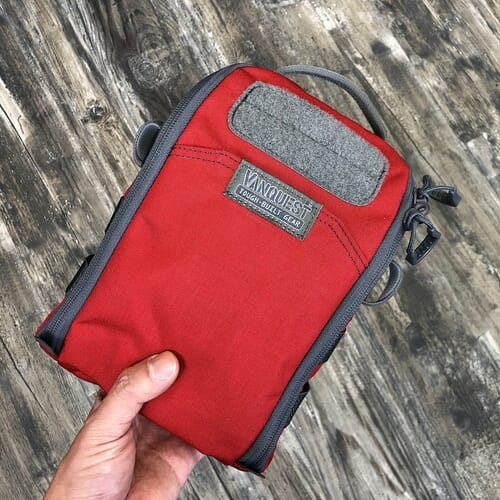 Vanquest’s FTIM 6X9 (Gen-2) organiser pouch New Features: (1) 29 elastic webbing slots; (2) Gear shelf bottom to support vertical items; (3) Hypalon zipper pull tabs and Spartan zipper pulls; (4) 500-D CORDURA coated with Durable Water Repellent (DWR); (5) Movable/removable 2 position key fob.